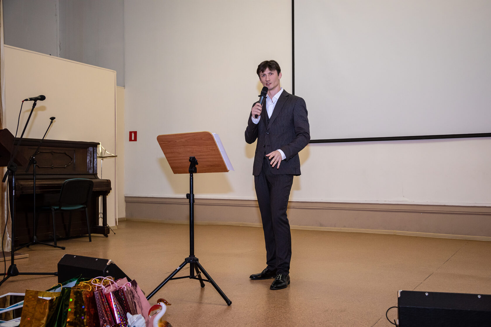 Завершил торжественное мероприятие небольшой концерт, в котором песни на слова В. А. Сластёнина исполнили авторы музыки: заслуженный артист Р Ф Александр Топчий, Сергей Климов и Сергей Корепанов. Украшением концерта стал вальс на музыку Евгения Доги в исполнении победителей первенства Москвы и России 2024 года Никиты Моисеева и Елизаветы Воловиковой.