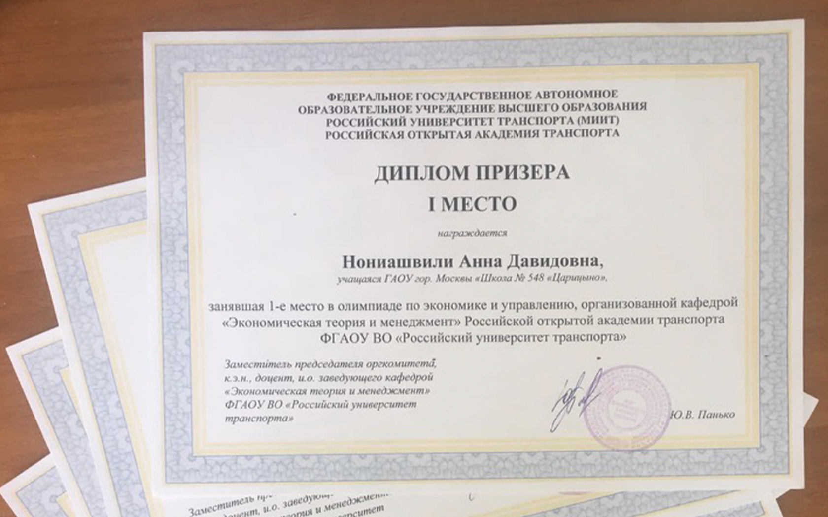 Победителем Олимпиады стала учащаяся ГАОУ гор. Москвы «Школа № 548 «Царицыно» Нониашвили Анна Давидовна. Второе место присуждено Лепешкиной Екатерине Сергеевне, студентке ГБПОУ МО Раменский колледж.