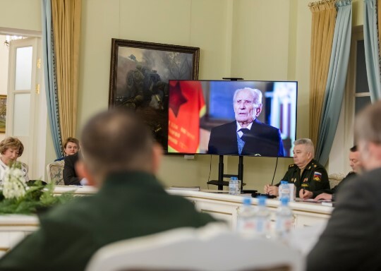 С видеодокладом, посвященном проблемам философии Великой Победы в контексте противостояния двух идеологий, к участникам конференции обратился почетный председатель Военно-философского общества Национальной ассоциации «Мегапир», почетный профессор Военного университета Минобороны России, ведущий научный сотрудник НИИ (ВИ) ВАГШ ВС РФ, член-корреспондент РАЕН, автор научных трудов, посвященных проблемам философии Великой Победы, фронтовик, доктор философских наук генерал-майор Степан Андреевич Тюшкевич, которому недавно исполнилось 107 лет.